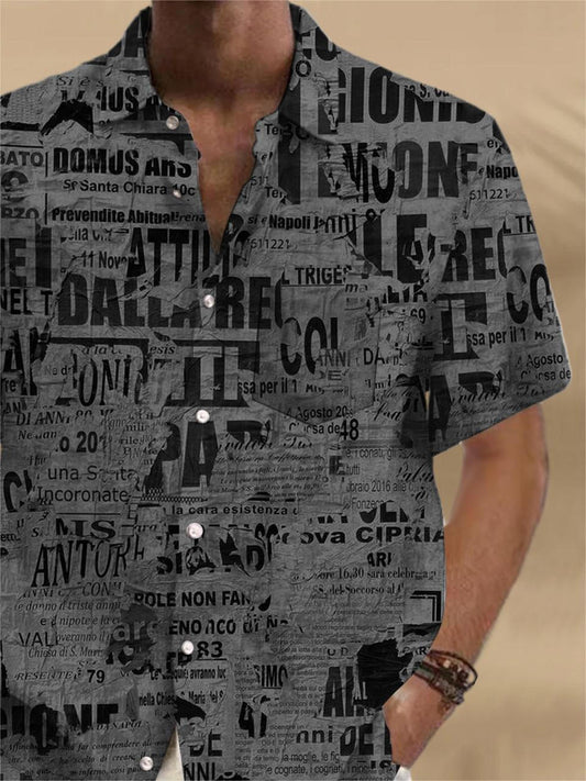 Newspaper Short Sleeve Men's Shir...