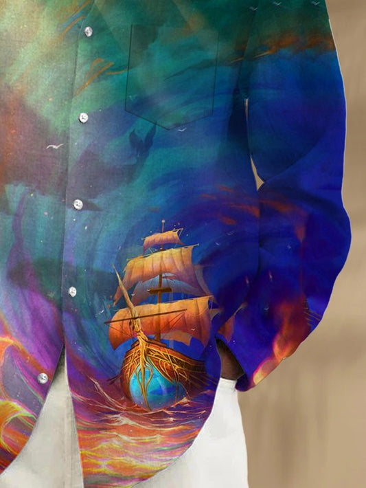 Sailboat Print Long Sleeve Men's ...