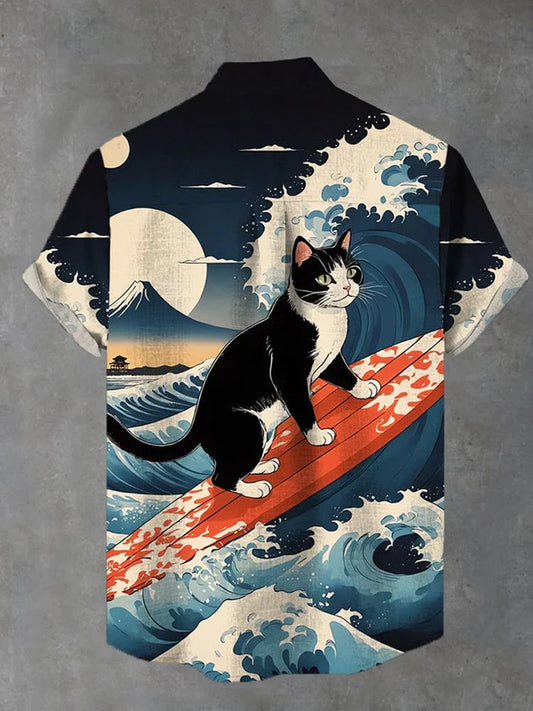 Ukiyoe Surfing Black Cat Printing Cot...