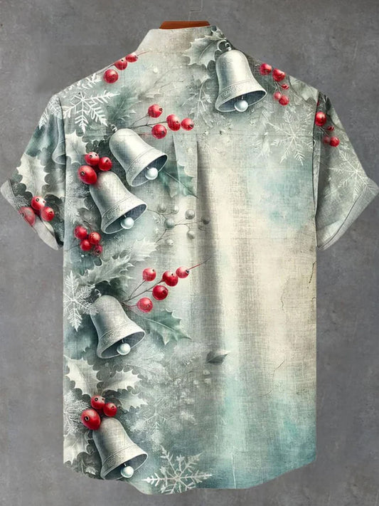 Vintage Christmas Bell Print Casual S...