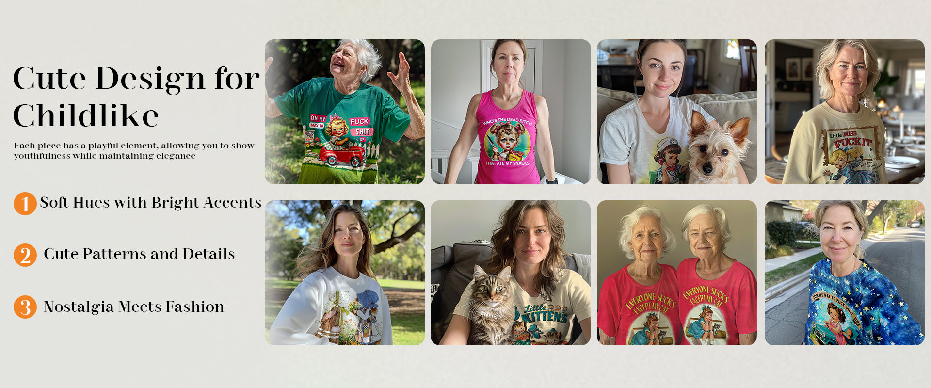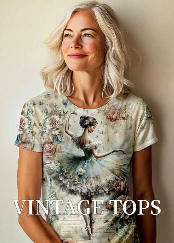 Women's Vintage Girls Printed Cas...
