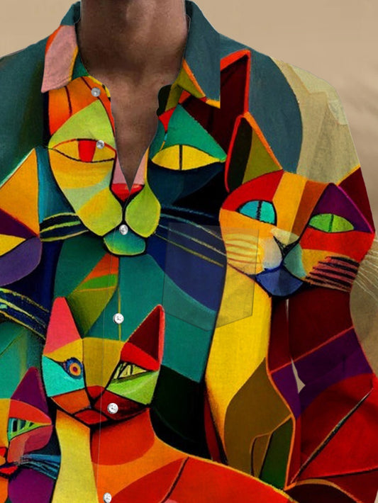 Langärmlige Herrenhemden mit Katzendr...