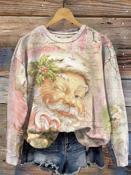 Women's Vintage Santa Print Crew ...