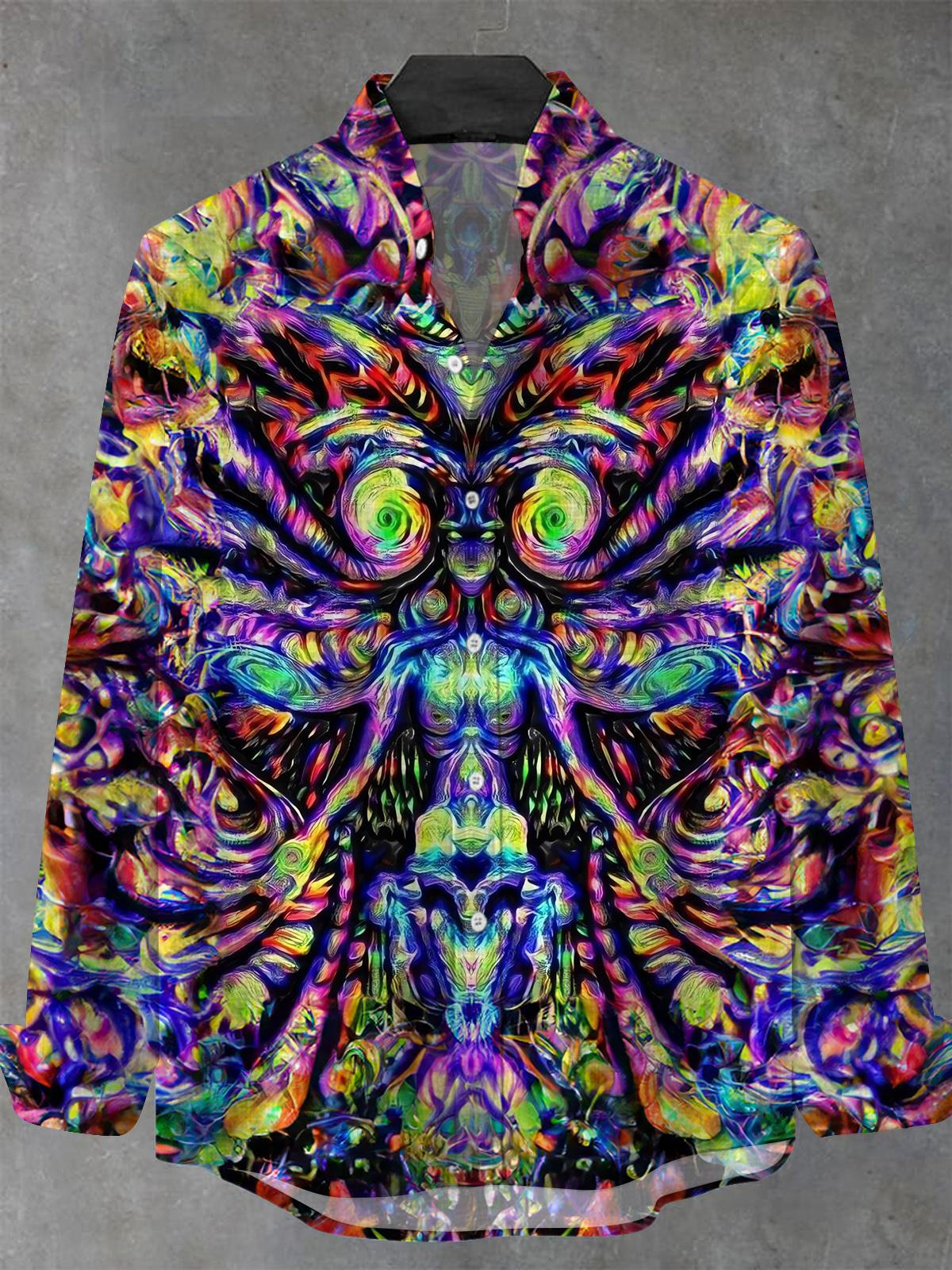Abstract Art Men's Pocket Long Sleeve Stand Collar Shirts