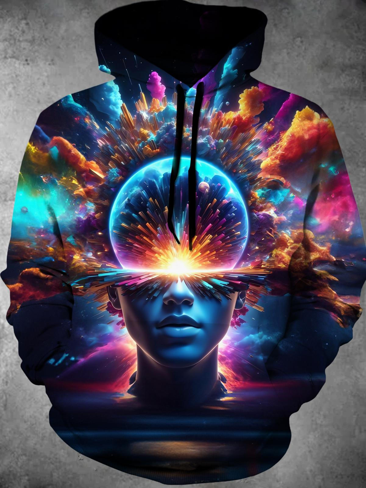 Abstract Face Art Long Sleeve Hooded Pocket Men's Top