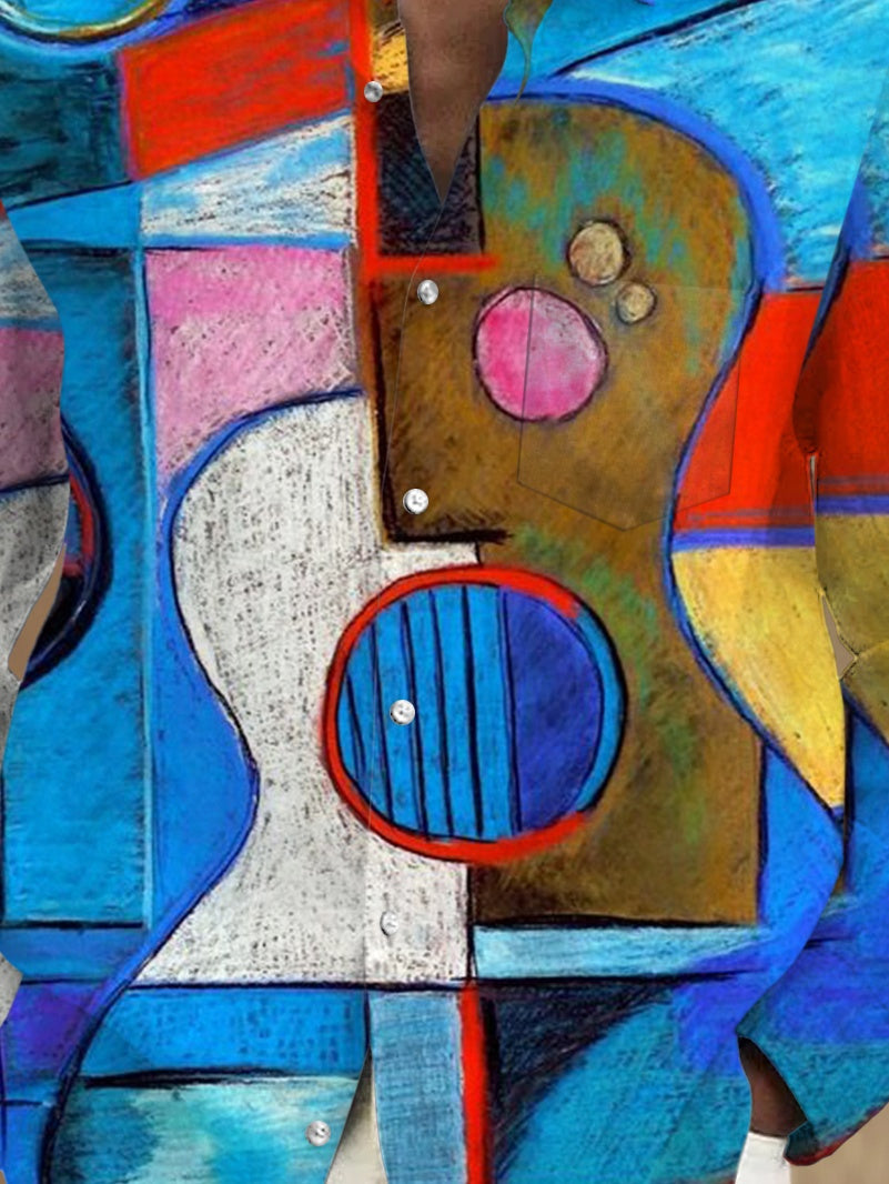 Langärmlige Herrenhemden mit abstraktem Gitarrendruck und Tasche