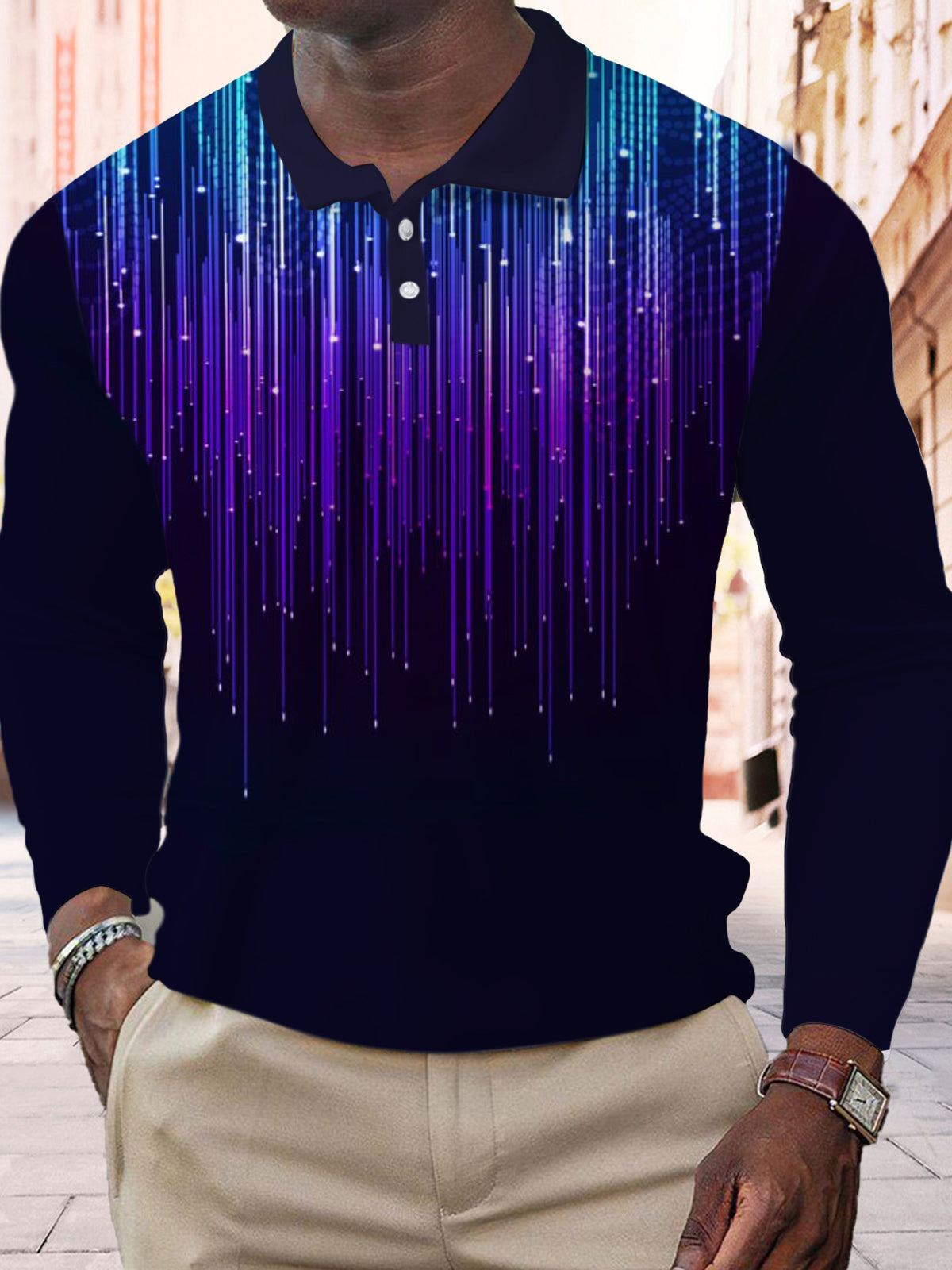 Langärmliges Poloshirt mit Knopfleiste und abstraktem Liniendruck für Herren