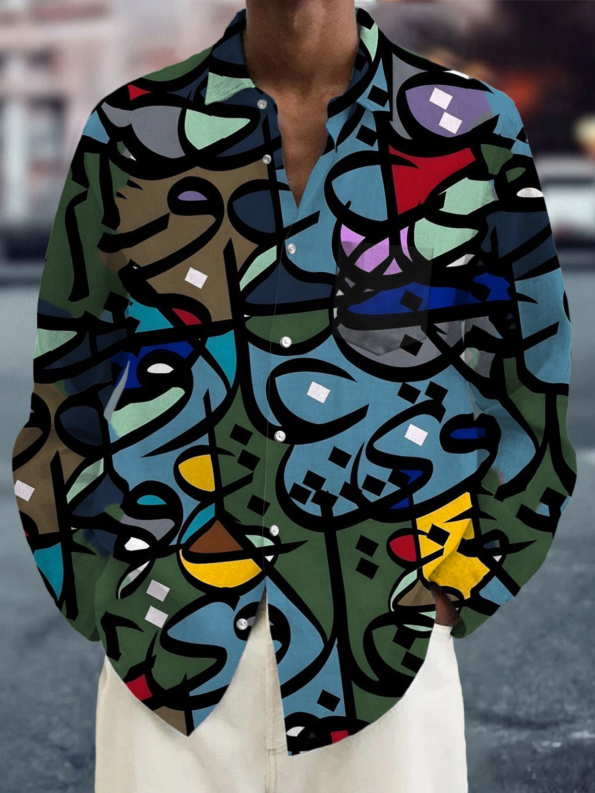Abstrakte Langarm Herrenhemden mit Tasche