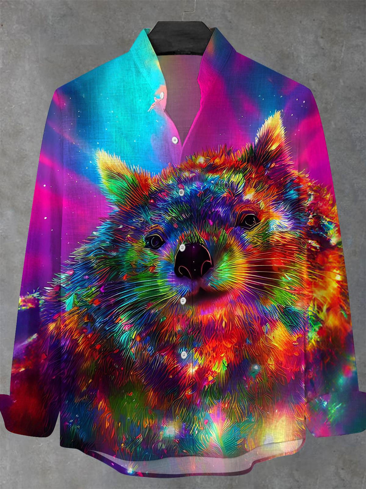 Animal Men's Pocket Long Sleeve Stand Collar Shirts