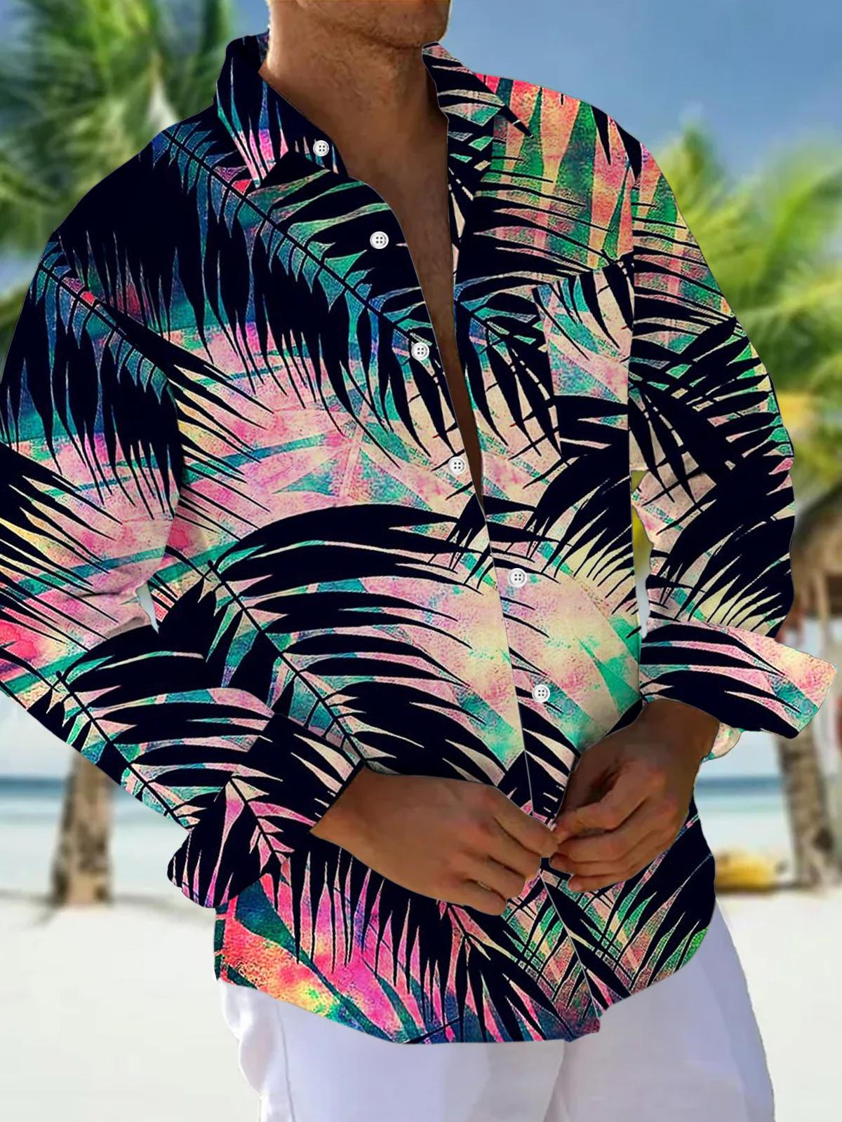 Langärmlige Herrenhemden mit botanischem Druck und Tasche