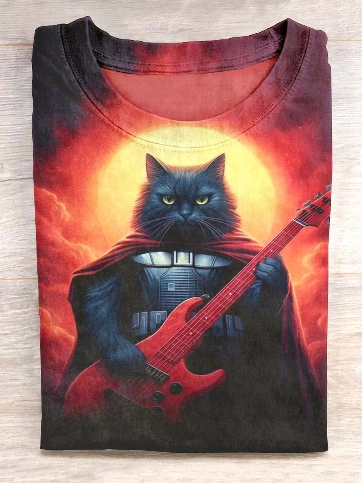 Cat Playing Guitar Round Neck Short Sleeve Men's T-shirt