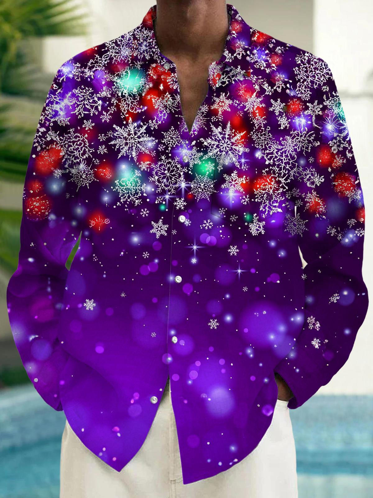 Christmas Snowflake Men's Pocket Long Sleeve Shirts