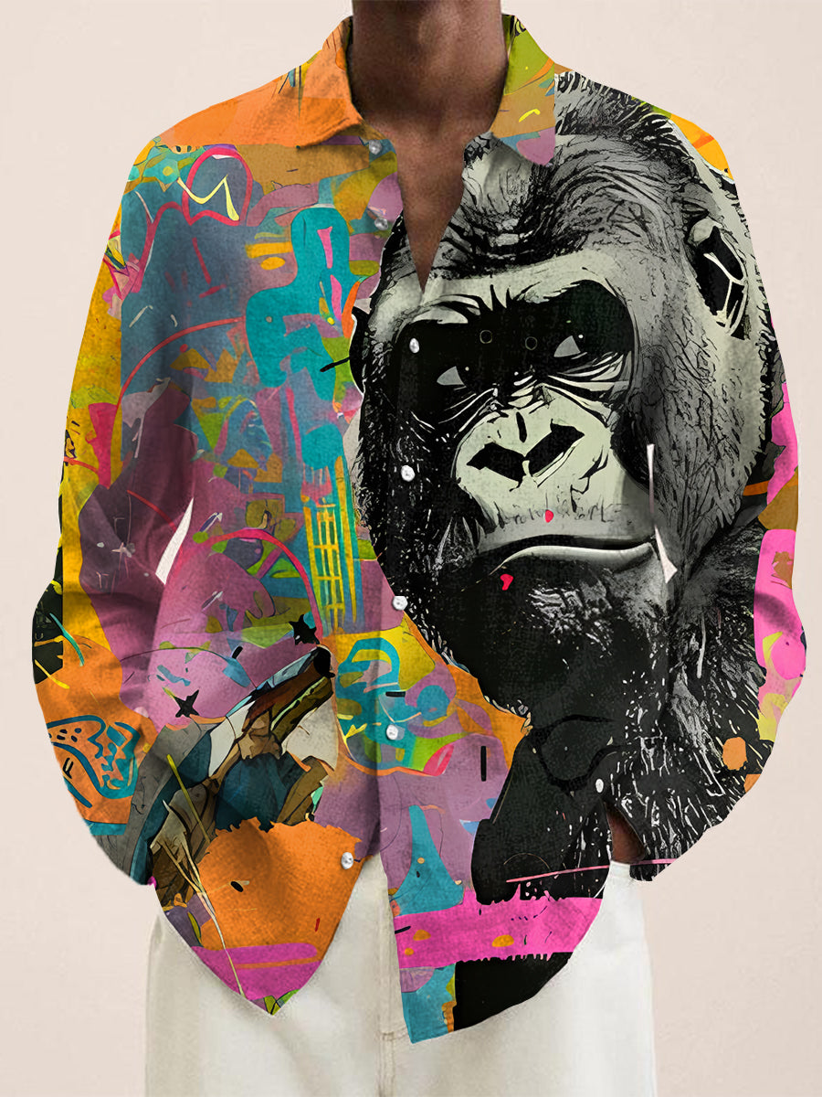 Creative Graffiti Orangutans Vintage Stripe Print Long Sleeve Shirt