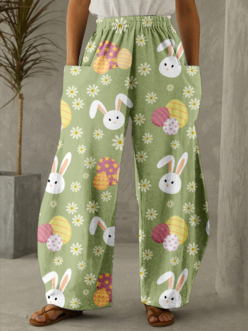 Easter Cute Bunny Flowers Print Casual Pants