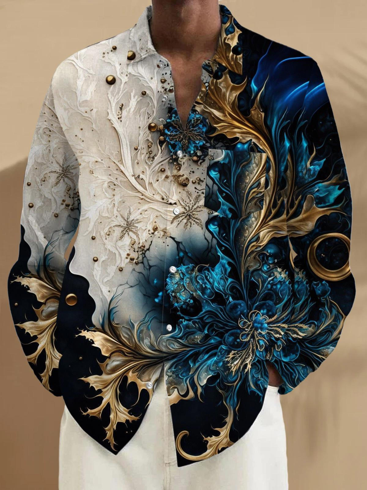 Langarmhemden für Herren mit Blumenmuster und Tasche