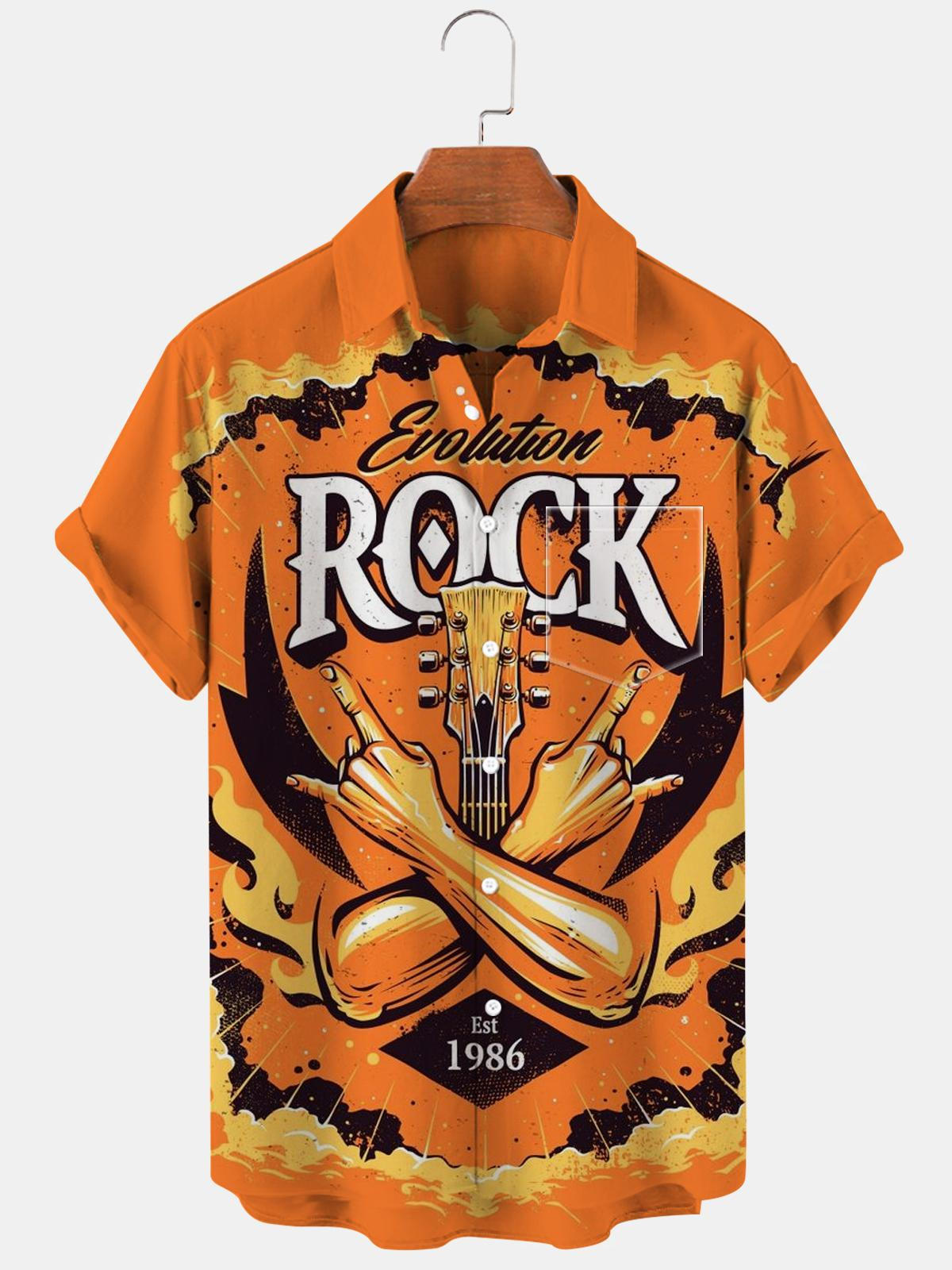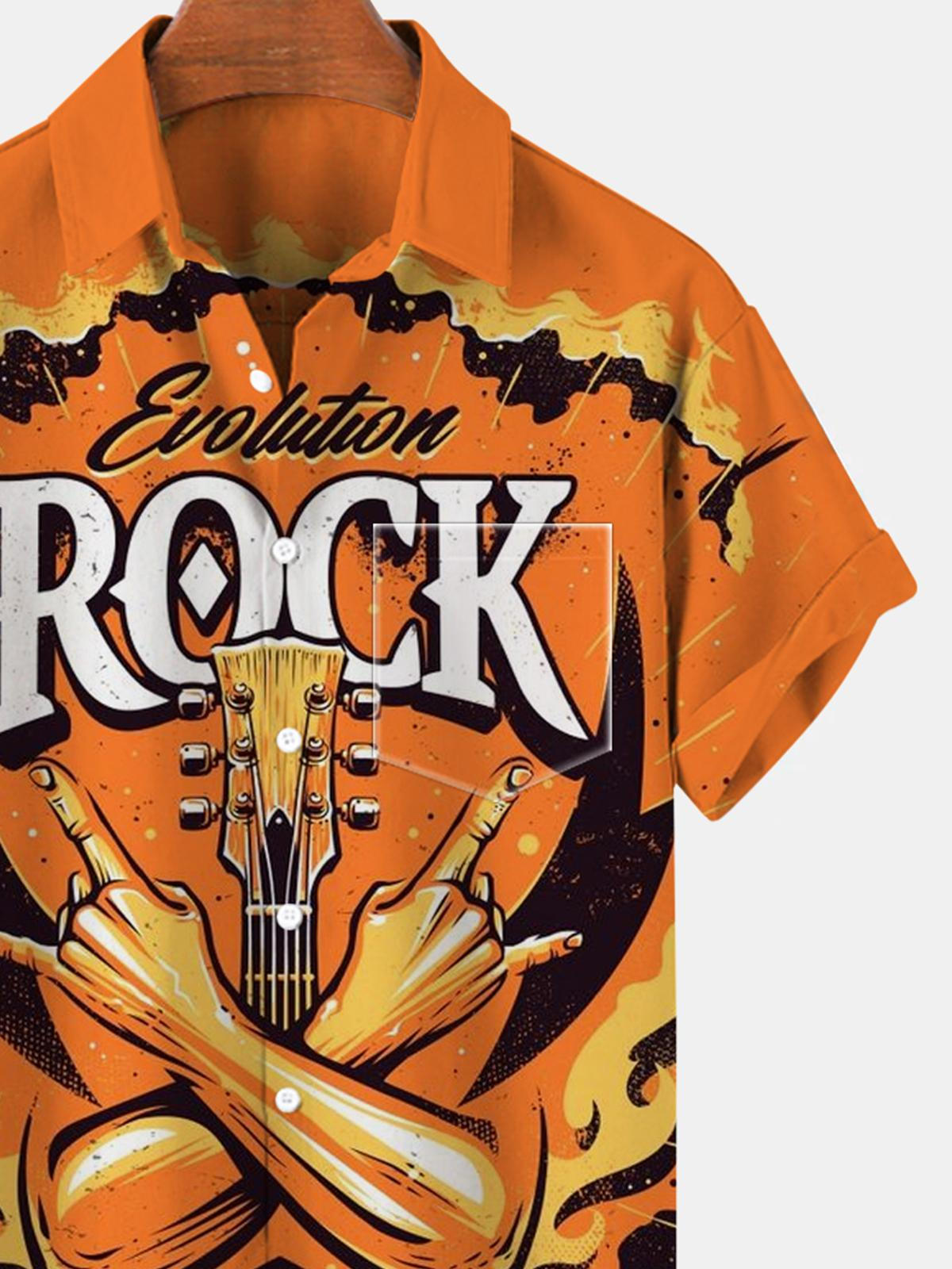 Kurzarmhemden für Herren mit Gitarrenmotiv und Tasche