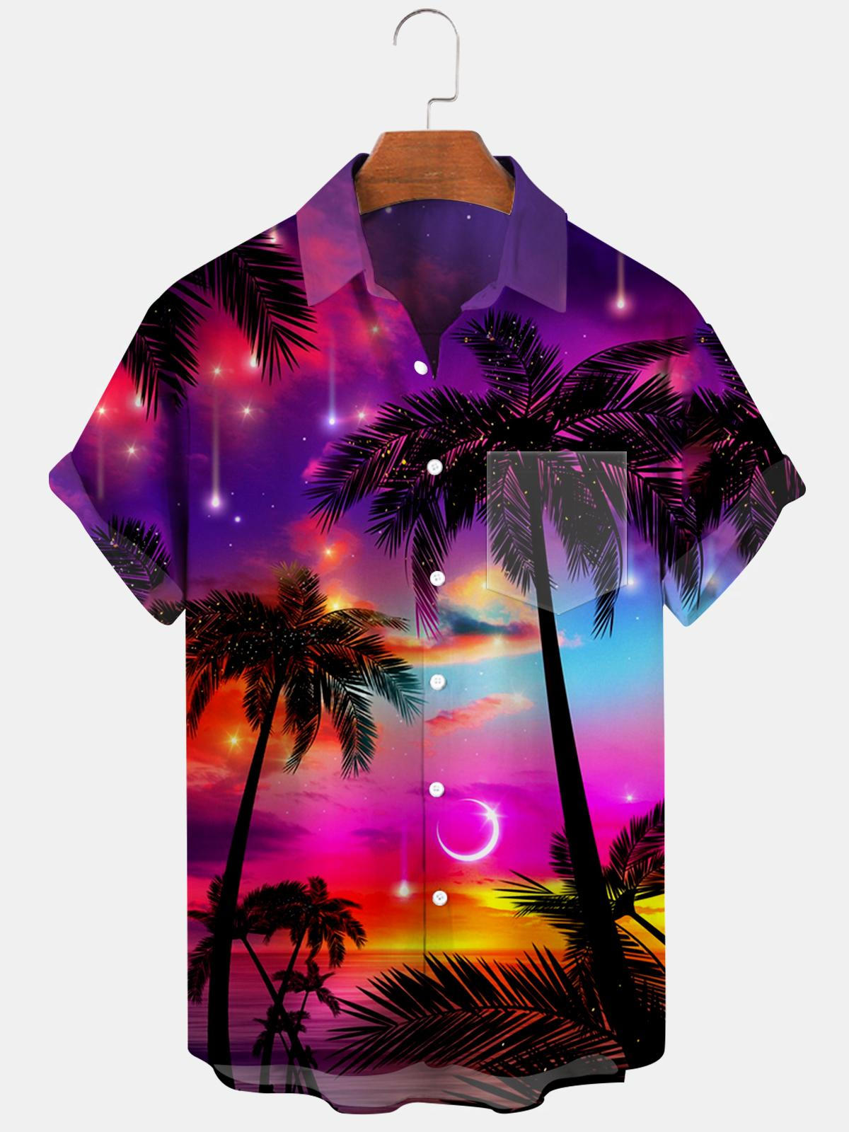 Hawaiian Sunset Coconut Palm Star Herrenhemden mit Tasche