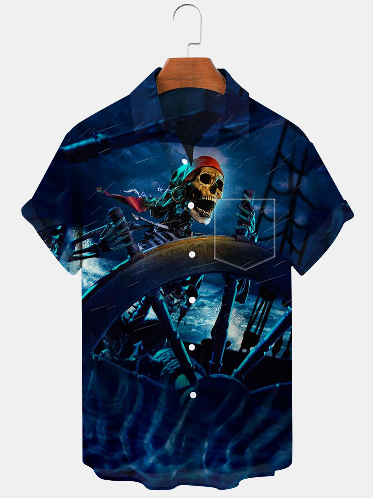 Kurzarmhemden für Herren mit Totenkopf-Motiv und Tasche