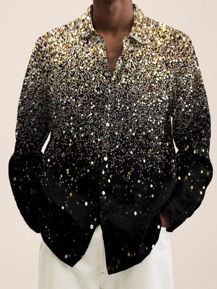 Vintage Gold Shiny Stripe Print Long Sleeve Shirt