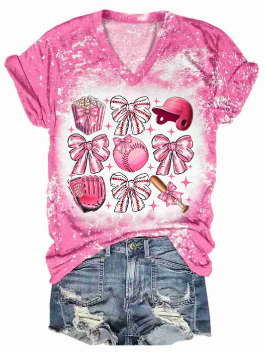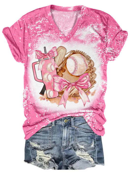 Women's Baseball Print V-Neck T-s...