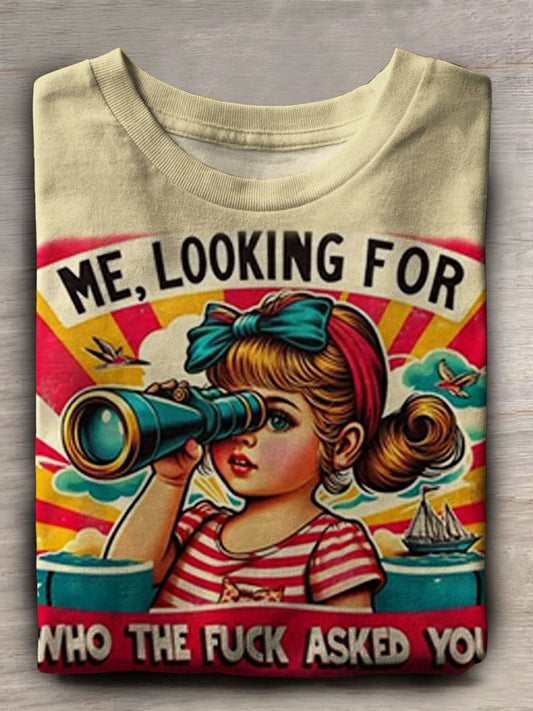 Women's Vintage Print Casaul Crew...