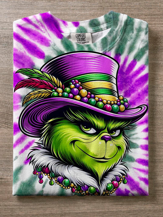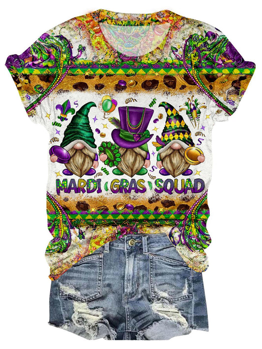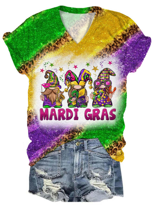 Mardi Gras Gnome V-Neck Tie Dye T-Shirt