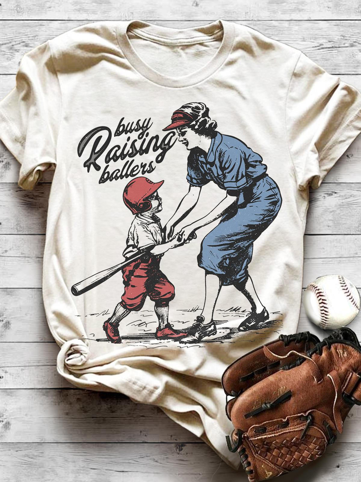 Busy Raising Ballers Kunst Cartoon Illustration Spaß Druck T-shirt
