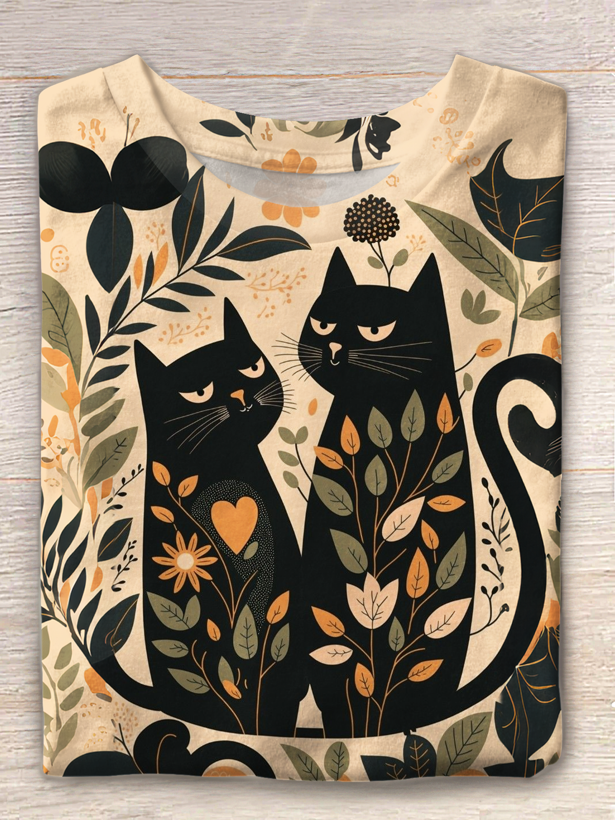 Vintage Geometric Cat Art Crew Neck T-shirt