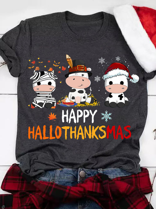 Cute Cow Hallothanksmas Print T-shirt