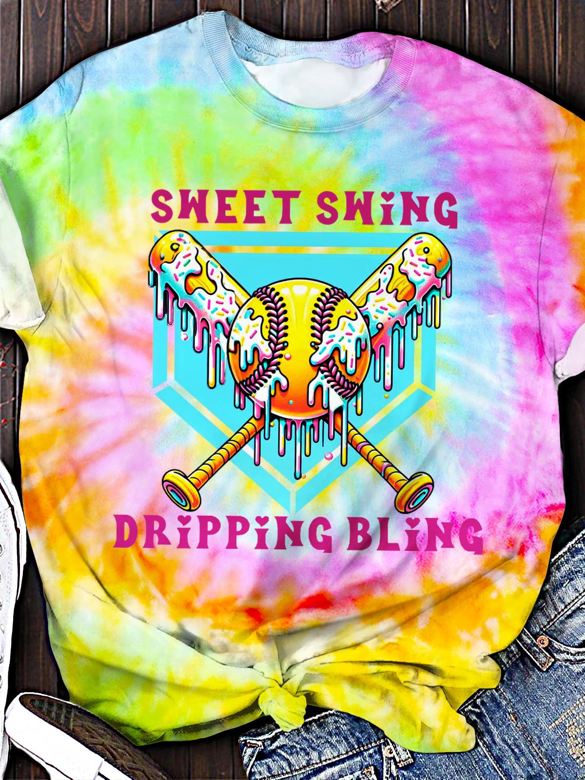 Colorful Ice Cream Softball Crew Neck T-shirt