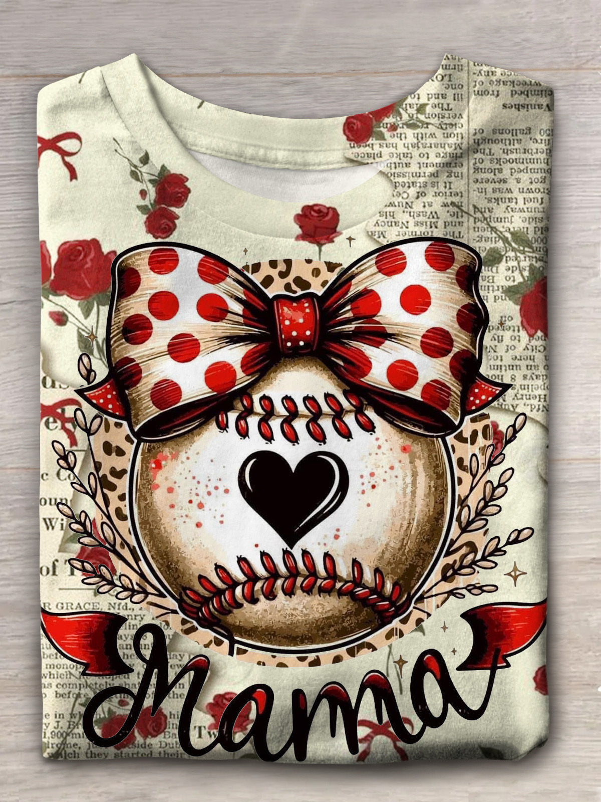 Mama Cute Bow Baseball Fan Sexy Vintage Print T-shirt