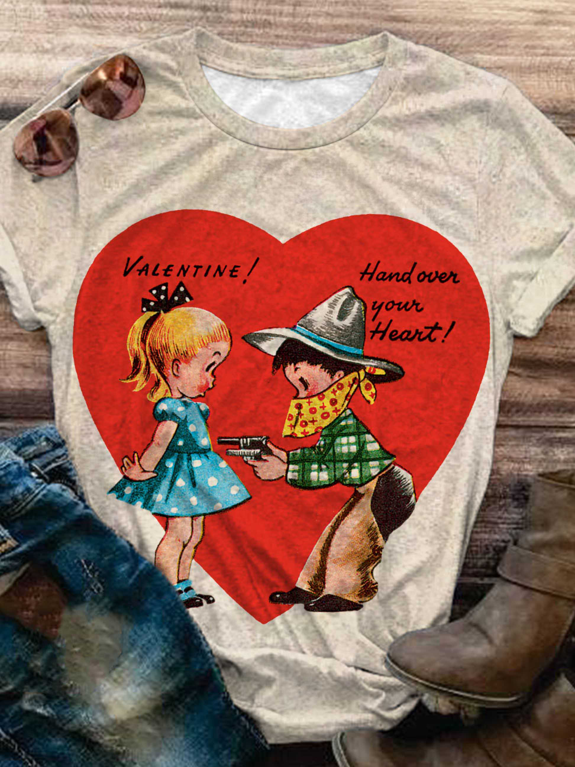 Vintage Cute Valentine's Day Girl with Cowboy Tee