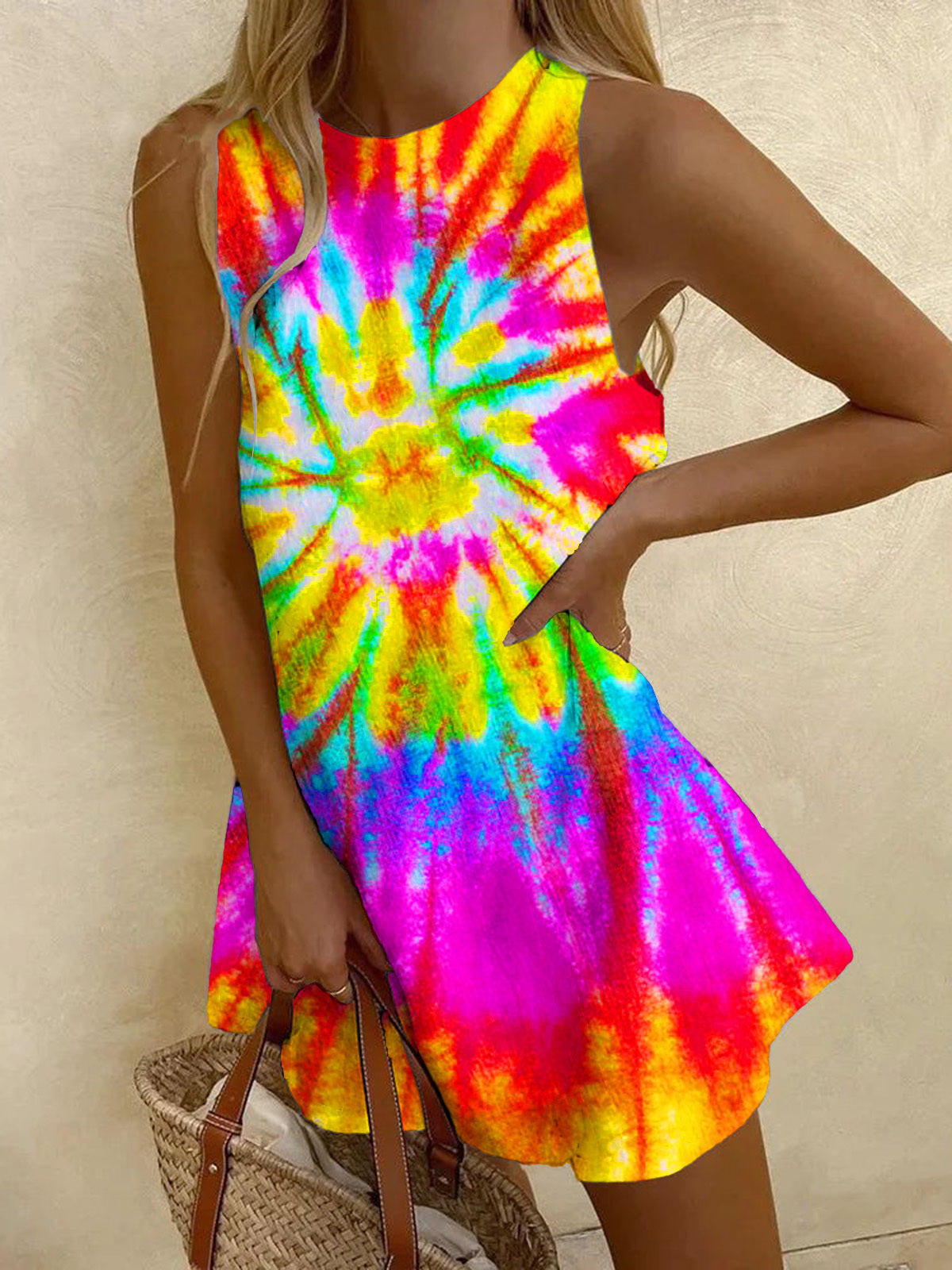 Women'S Colorful Tie Dye Vacation Vest Skirt