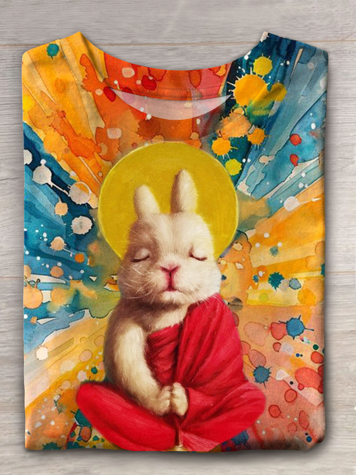 Women's Cute Rabbit Faith Fun Print Casual T-shirt