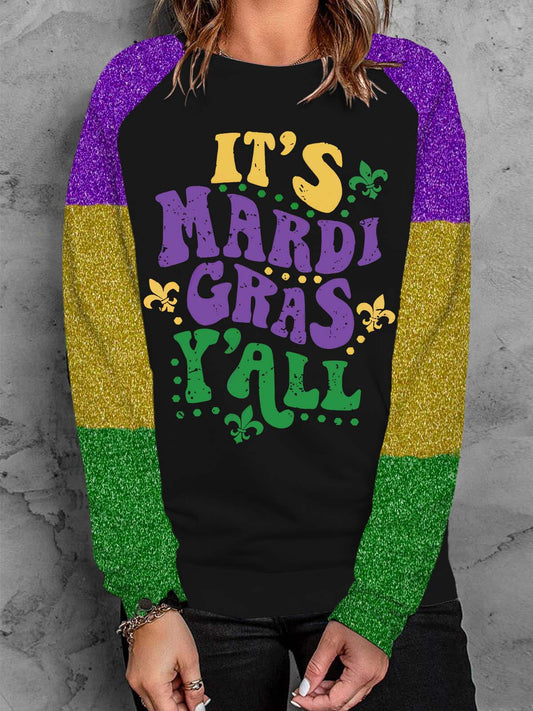 РаспродажаHappy Mardi Gras Print Long Sleeve Top