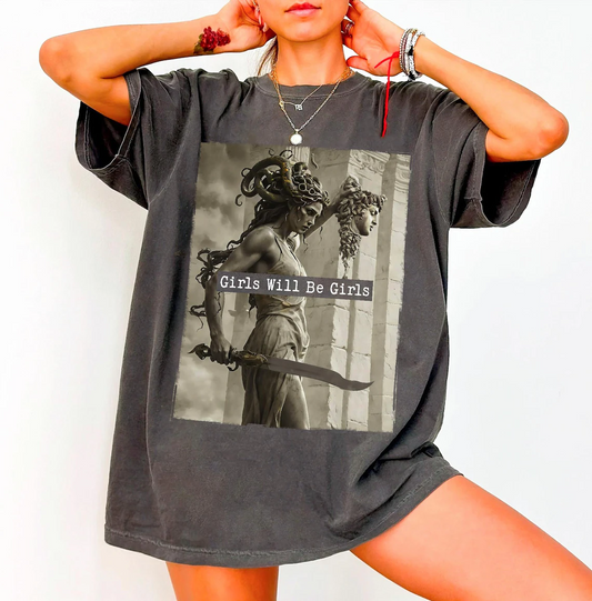 РаспродажаGirls Will Be Girls Medusa Statue Tee