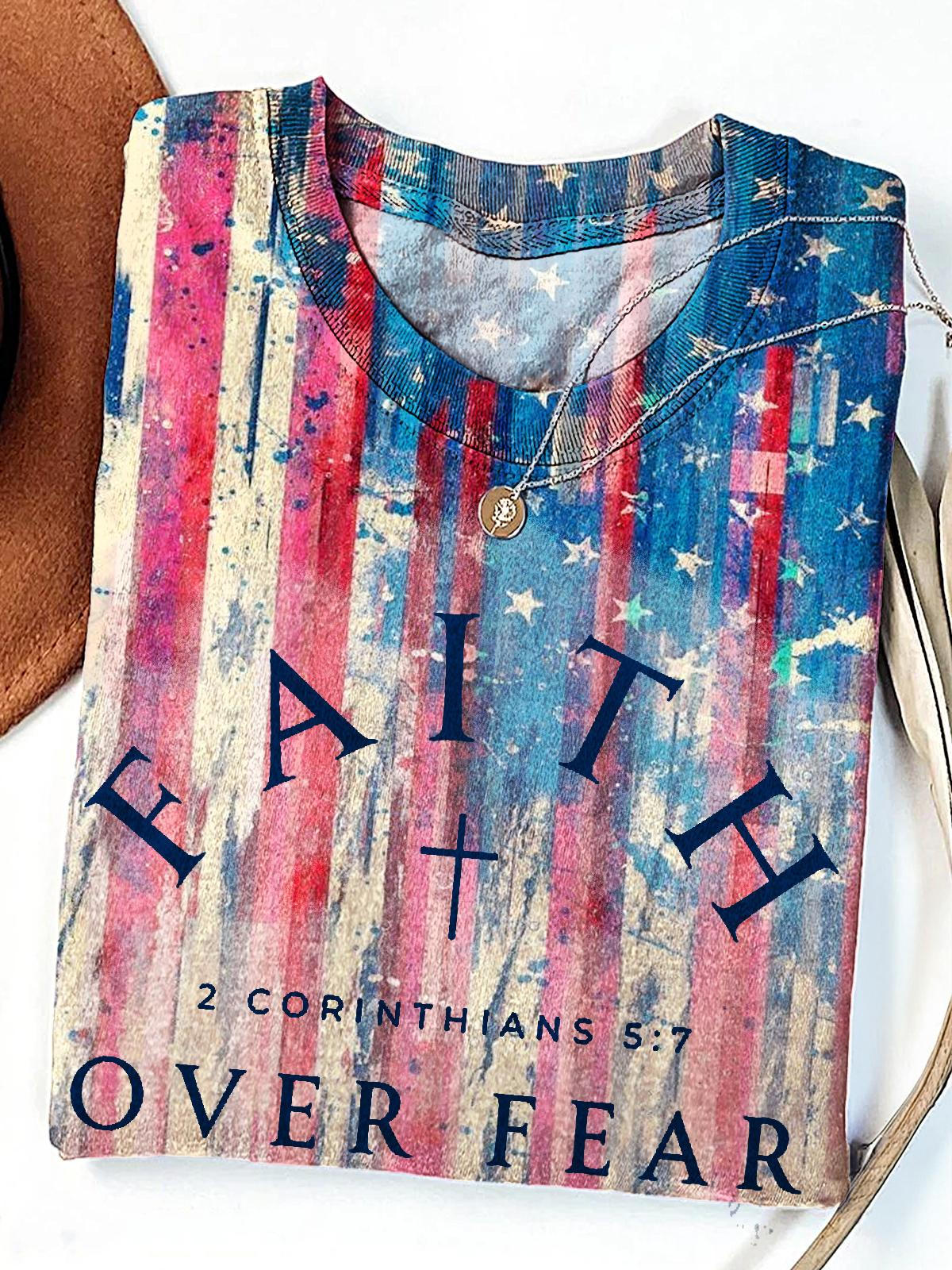Jesus Faith Conquers Fear Printed Crew Neck T-shirt